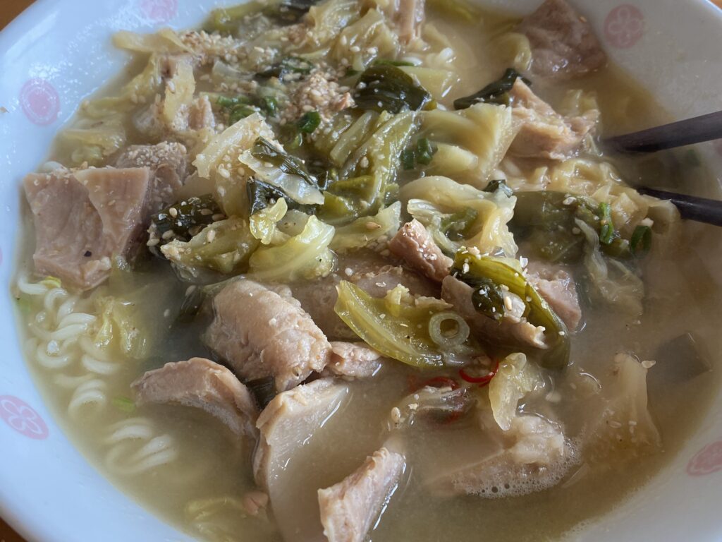 前夜のもつ鍋の残りを塩ラーメンに掛けた。 サッポロ一番牛もつ煮込みラーメン。 ...