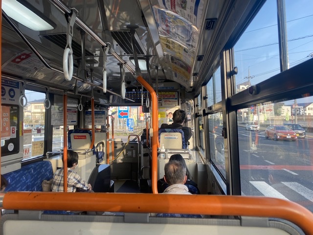 松山の15番のバーディーをみて出発。 やっぱゴルフはおもしろいネ! バス停「岡西...