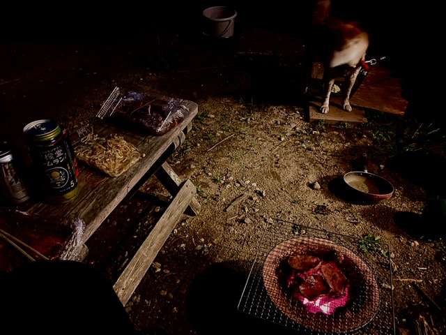 肉が少し残っていたので、 しちりん出して昨日の燃え残りの炭を再起動(^_-)-☆ 消し...