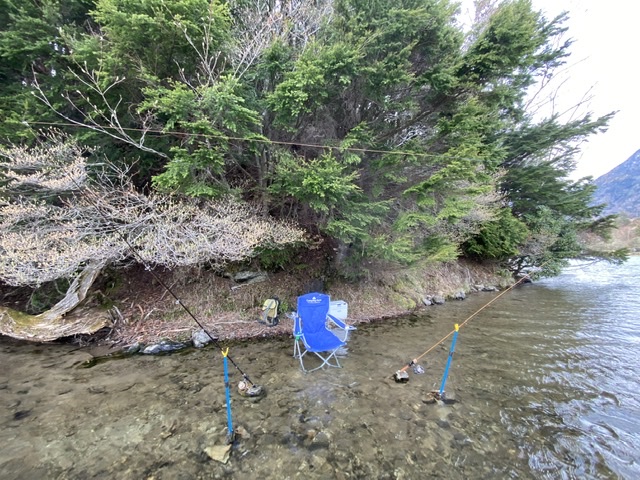 湯の湖の釣りポイント「ヒノキ」 たぶん平成5年、竹沢と犬井とここに夕方に入って...