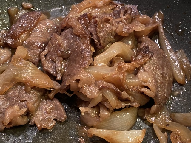 晩飯はすき焼き丼。 5人前をフライパンで焼いて、 よーし!出来上がりーって瞬間、...