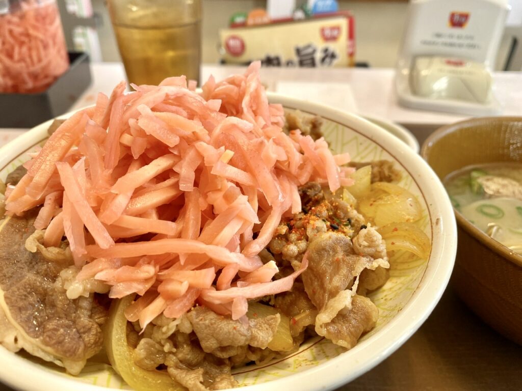 すき家の牛どん。 中盛つゆだく。紅ショウガてんこ盛り。 でも本当はホロホロチキ...