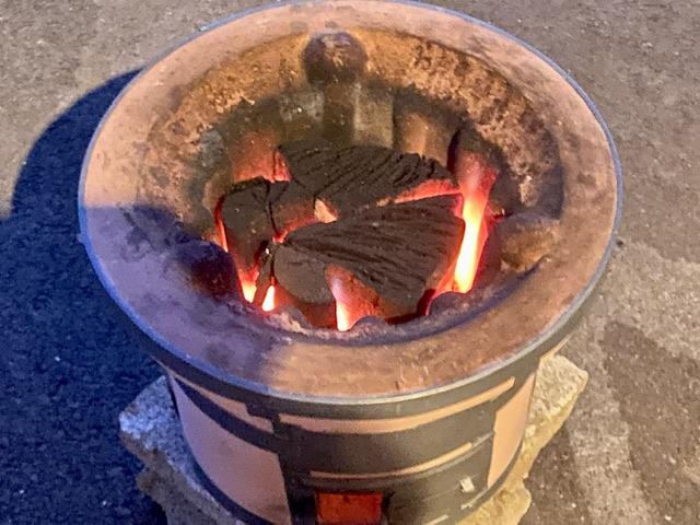 ひさびさに七輪登場! 炭(スミ)が大き過ぎた… 長持ちするぶん、火力が弱くなるんだ...