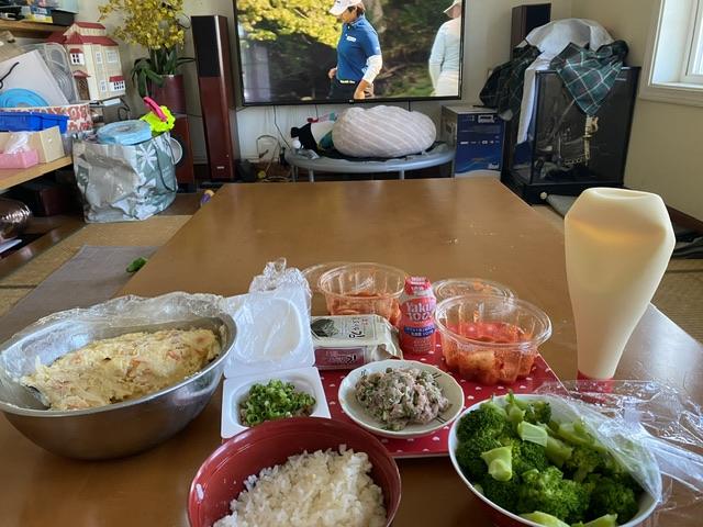 LPGAをみながら朝ごはん。 2日間、食事を制限して酒も抜き(これがきつい!)胃腸が...
