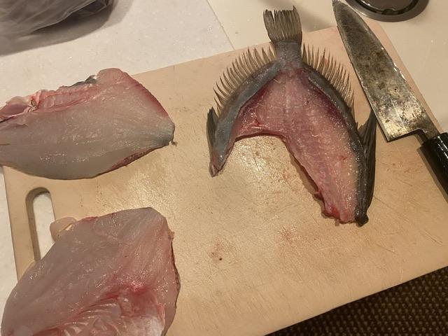 夜9時。 マトウダイ捌いたー。 お腹ぺこぺこでぶつ切りで全部食べちゃった。 やる...
