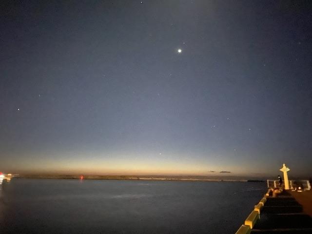 薄明の大洗港。 けっこう寒い。 6時頃からまわりが釣れだしたけど 俺だけ釣れない...