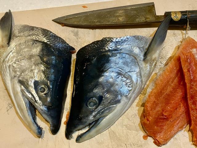 シャケの頭は割りやすいなぁ。鯛の100倍らくちんに割れる。