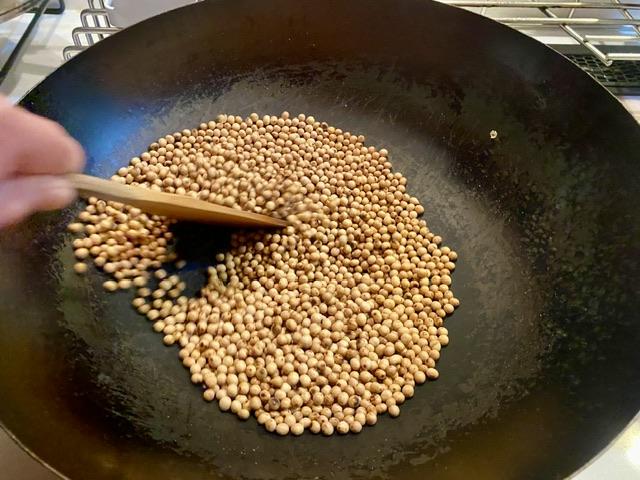 北海道の小粒大豆を炒る。今日はぜってー焦がさないぞー。