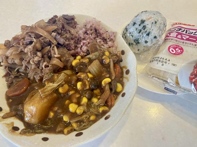 あさめし。 ぎゅ~愛がけカレー(^_-)-☆ 昨日の牛どんがうまかったなぁ。 たぶんビ...