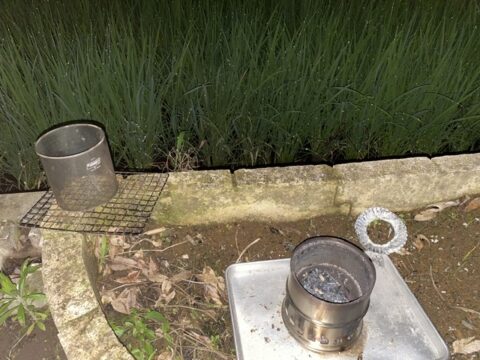 みっかんないので割りばしを1/4にちぎって井桁ミニやぐらを勢いよく燃やして着火。