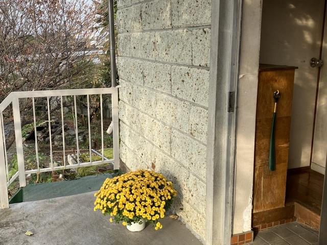 菊の鉢は少しづつ茶色っぽくなってきた。