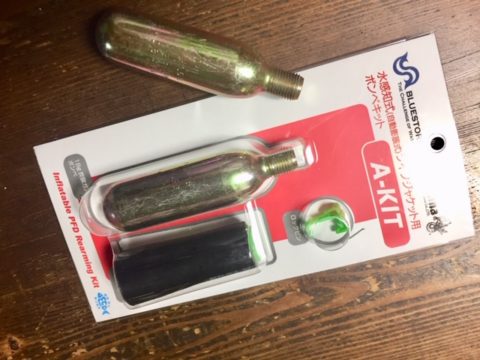 自動膨張式救命胴衣 2018 9/24 つり日記 誤作動で爆発!(1秒かからず一気にカバーのベルクロを引きはがしながら膨らむのでちょっとした破裂音がする)膨張してしまったリョービの釣り用ライフジャケット。 万が一(金田一)の救命道具なのであんまり再使用はしないんだけど、Amazonにリペアキットあったので購入。 水センサーとガスタンクを取り替えて丁寧に折りたたんでベルクロテープくっつけて再使用。 念のため他人には絶対貸さないようにします。 つり日記 膨らんだ。 A-KIT