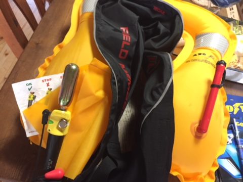 前回の釣行(9/23)に誤作動で爆発してしまったライフジャケット。